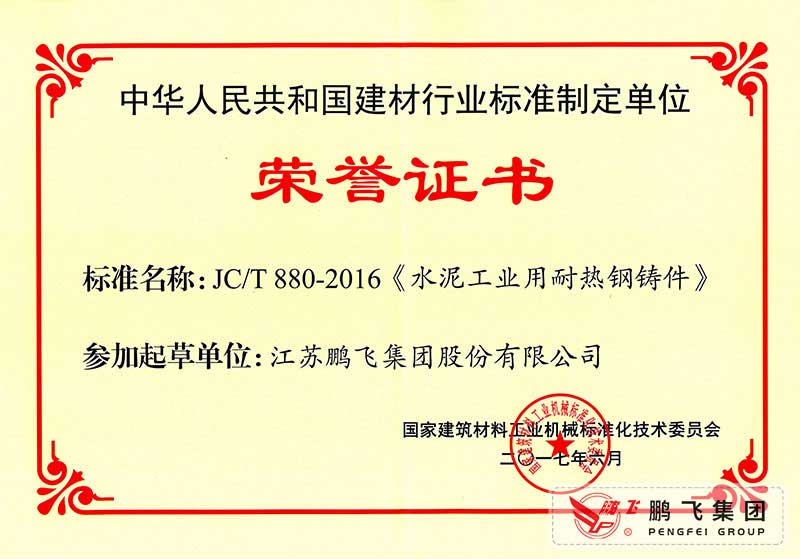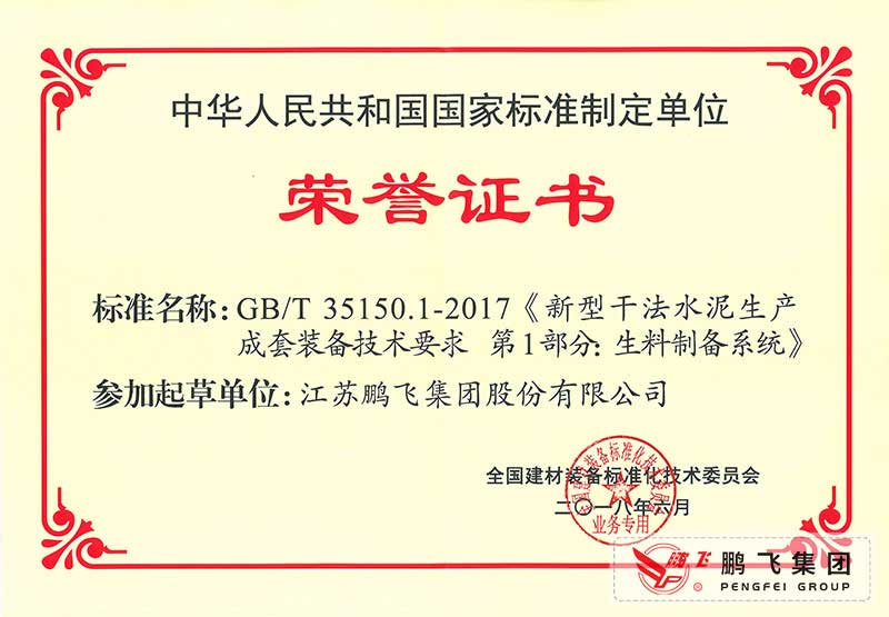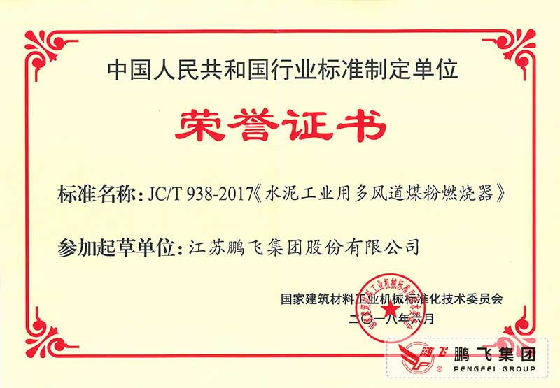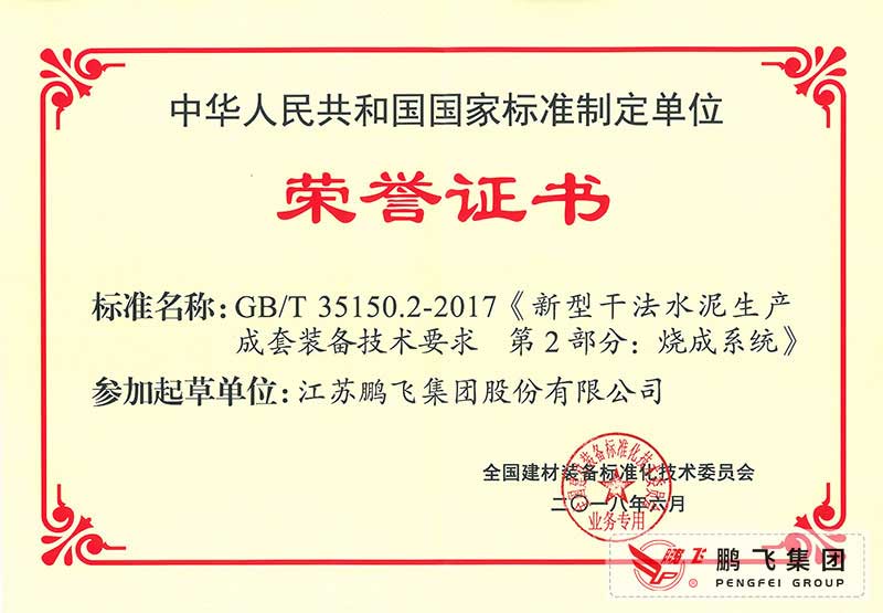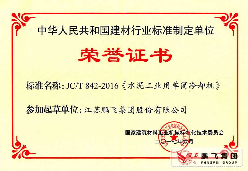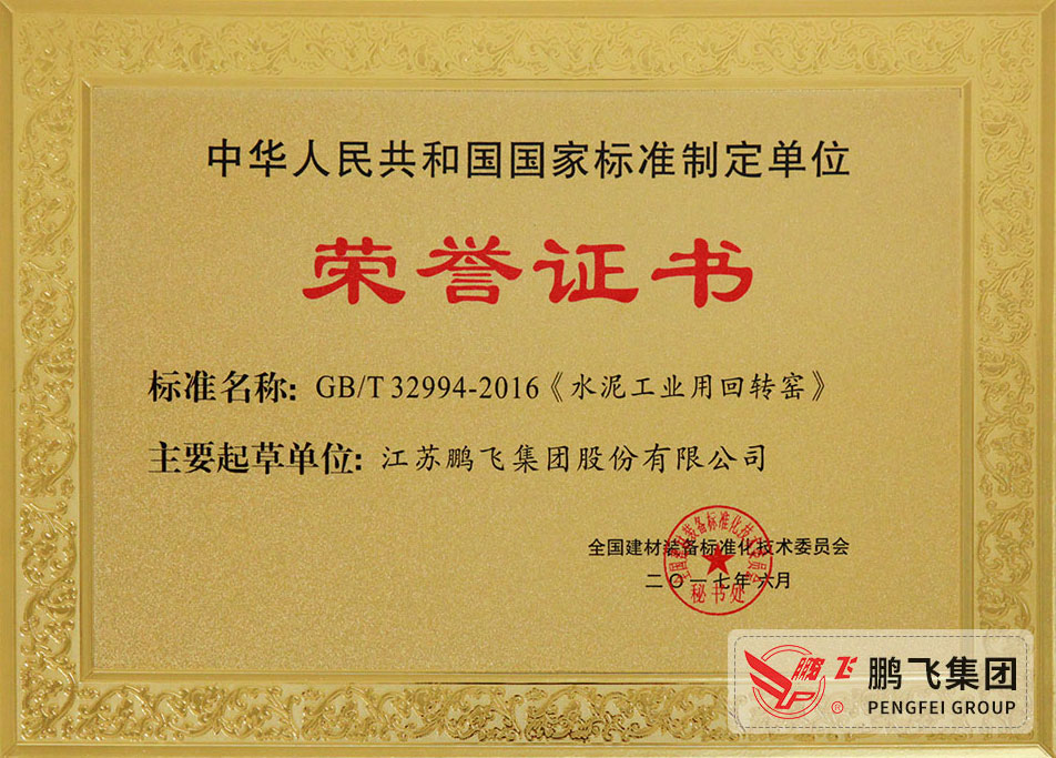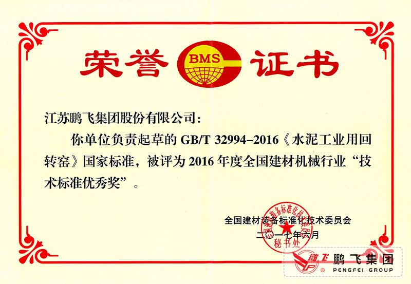(2017年6月21)回轉(zhuǎn)窯國(guó)標(biāo)起草證書技術(shù)標(biāo)準(zhǔn)優(yōu)秀獎(jiǎng)
