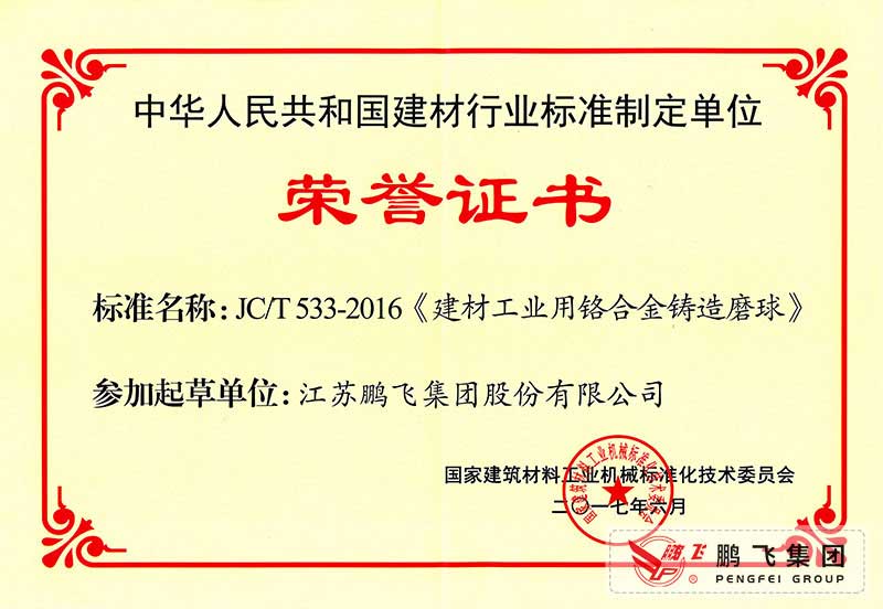 (2017年6月21)鉻合金鑄造球磨行標(biāo)起草證書