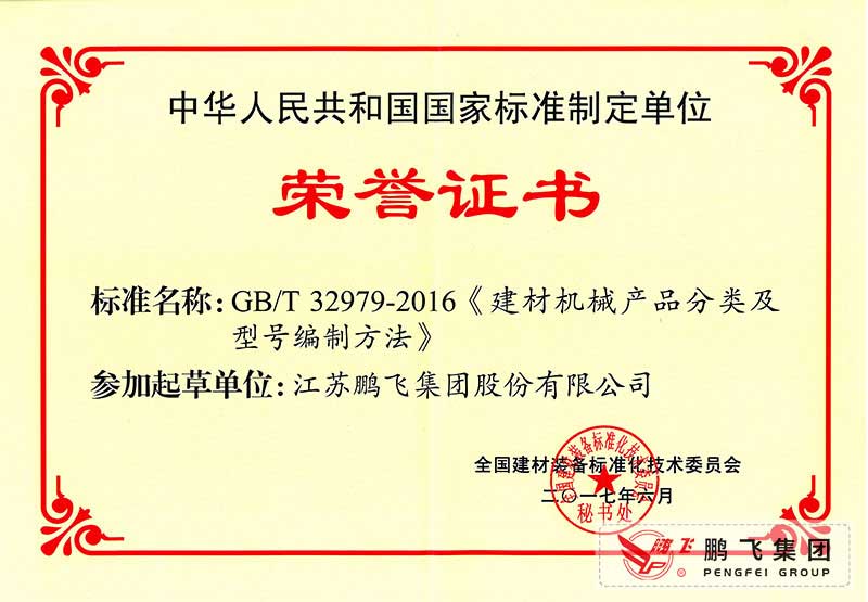 (2017年6月21)建材機(jī)械產(chǎn)品分類及型號(hào)編制方法國(guó)標(biāo)起草證書