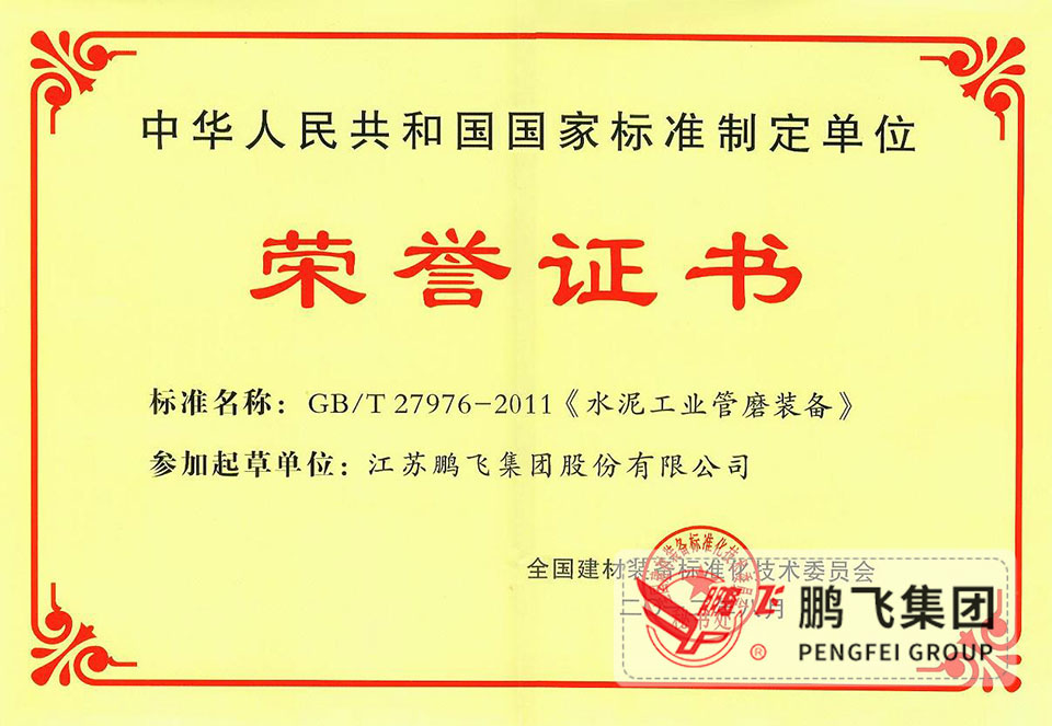 (2012年8月)管磨裝備國(guó)家標(biāo)準(zhǔn)起草單位之一