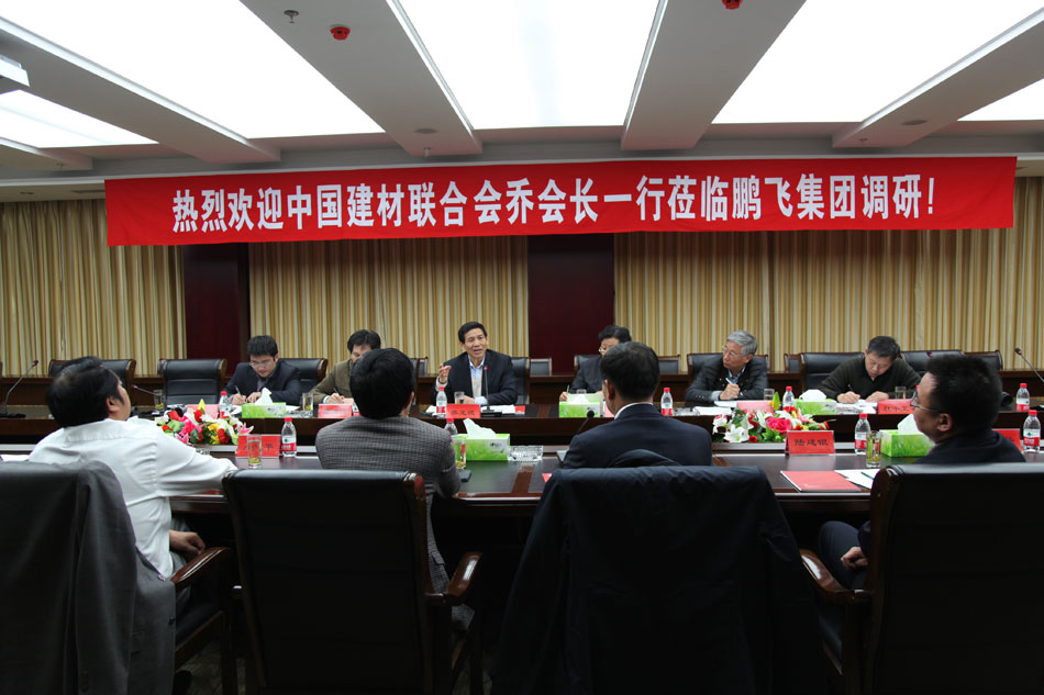 2014年11月25日,中國建材工業(yè)聯合會喬龍德會長到江蘇鵬飛集團現場考察,喬會長一行參觀了集團位于城北工業(yè)園的窯爐和節(jié)能粉磨設備生產現場、科技成果展廳,聽取了鵬飛集團董事長王家安關于落實全國建材系統(tǒng)工作會議精神和鵬飛集團轉型升級等方面的情況匯報。