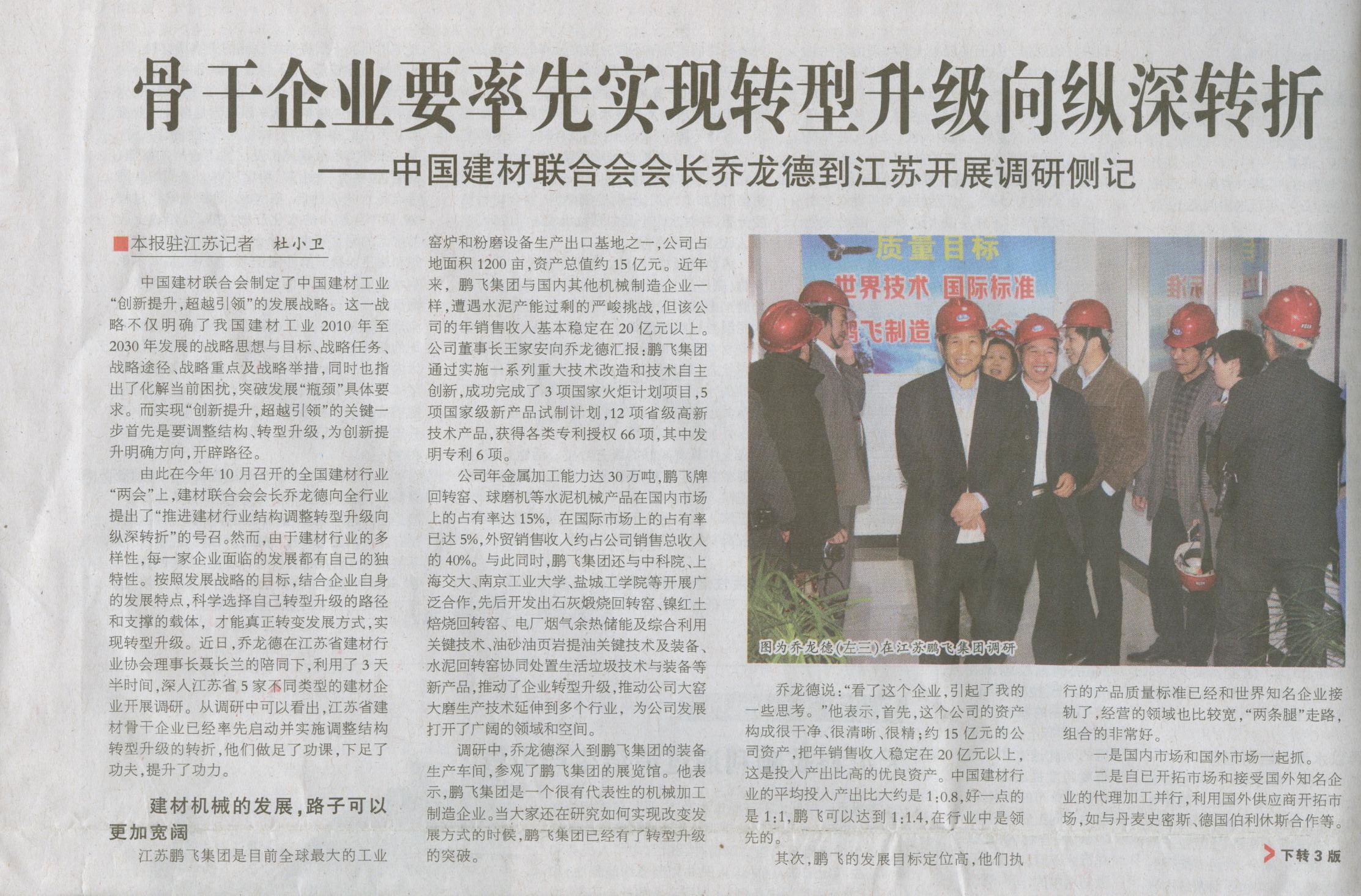 骨干企業(yè)要率先實現(xiàn)轉型升級向縱深轉折——中國建材聯(lián)合會會長喬龍德到江蘇開展調研側記