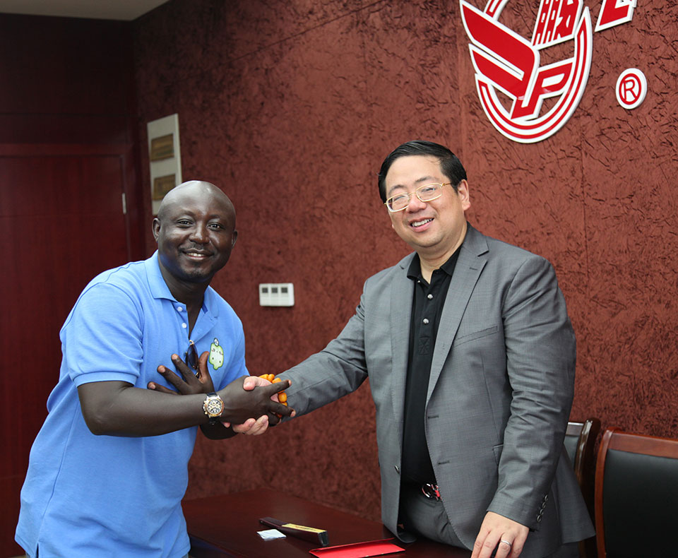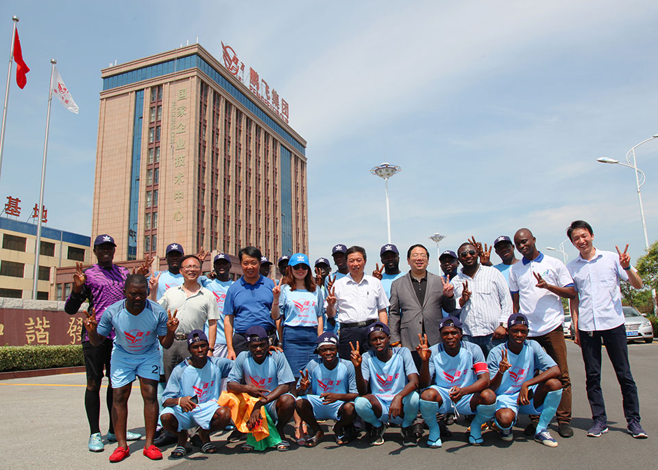 恰逢江蘇鵬飛集團(tuán)與*達(dá)成建設(shè)年產(chǎn)100萬(wàn)噸水泥粉磨站項(xiàng)目合同,應(yīng)江蘇鵬飛集團(tuán)的邀請(qǐng),7月15日*U17隊(duì)來(lái)到海安,并在海安城南實(shí)驗(yàn)中學(xué)與我縣教育聯(lián)隊(duì)舉行一場(chǎng)國(guó)際足球友誼賽,本次比賽由江蘇鵬飛集團(tuán)全程贊助。時(shí)值盛夏,天氣炎熱,但一點(diǎn)也不影響比賽的順利進(jìn)行,球員的激情和觀眾的熱情充盈整個(gè)賽場(chǎng),場(chǎng)面和諧融洽,雖為比賽,實(shí)則是相互交流學(xué)習(xí),充分發(fā)揮了友誼第一,比賽第二的精神。此次友誼賽是我縣本土球隊(duì)首次與國(guó)際球隊(duì)接洽,在比賽中也讓我縣教育聯(lián)隊(duì)受益匪淺、感觸頗深,對(duì)今后青少年校園足球教育大有裨益。比賽結(jié)束后,董事長(zhǎng)王家安帶領(lǐng)*U17足球隊(duì)員參觀了鵬飛集團(tuán)生產(chǎn)基地,并舉行座談及饋贈(zèng)禮品,簡(jiǎn)單的一場(chǎng)足球賽,卻為譜寫(xiě)中非友誼添上實(shí)實(shí)在在的一筆。