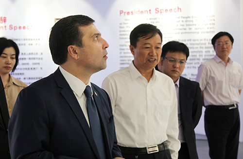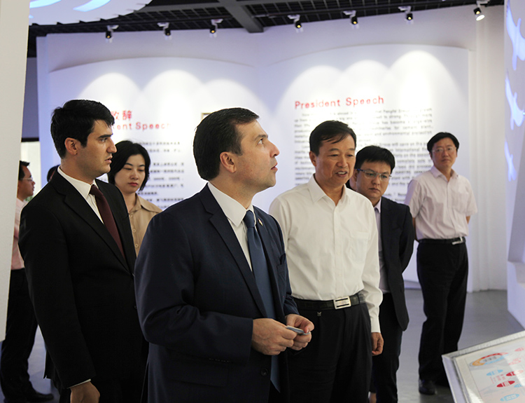 秋風(fēng)送爽,丹桂飄香。24日下午鵬飛集團迎來了尊貴的客人——塔吉克斯坦駐中國大使達夫拉·特佐達先生一行。大使先生在海安市宣傳部領(lǐng)導(dǎo)的陪同下,參觀考察鵬飛集團。