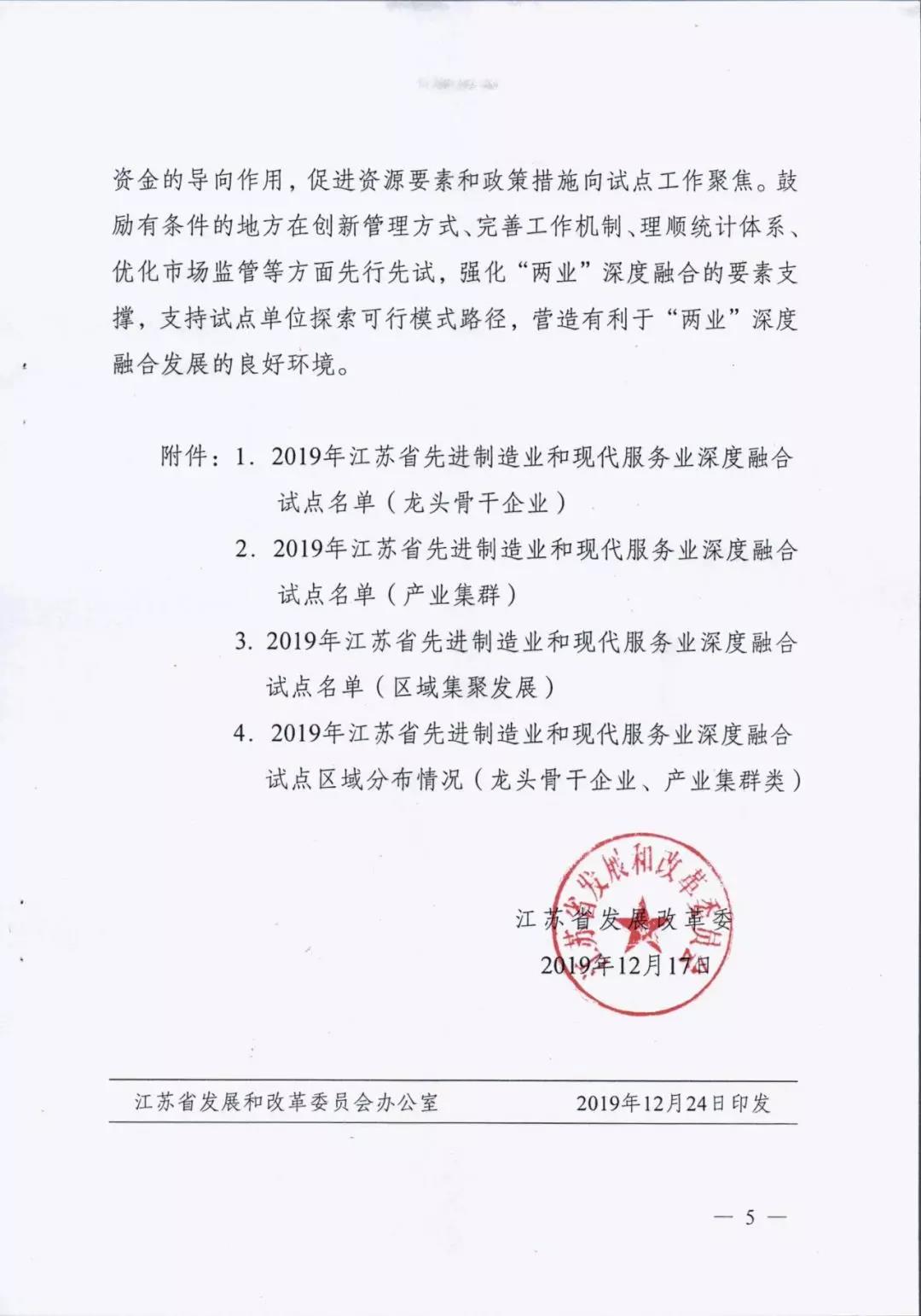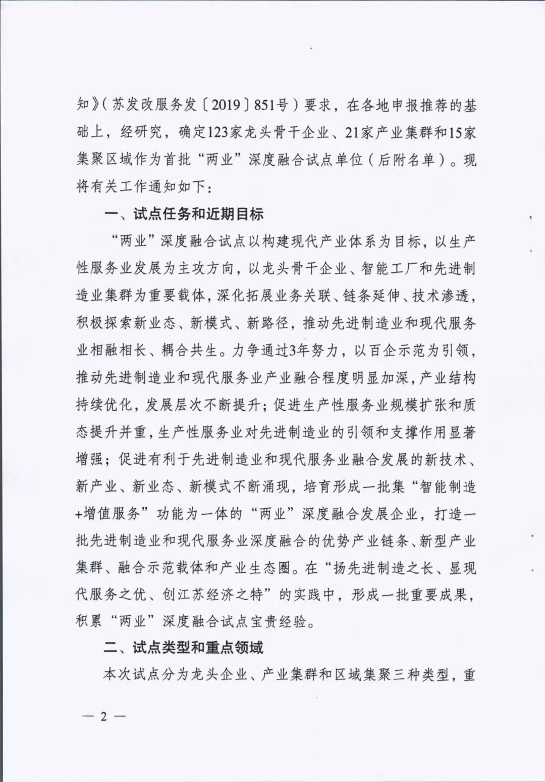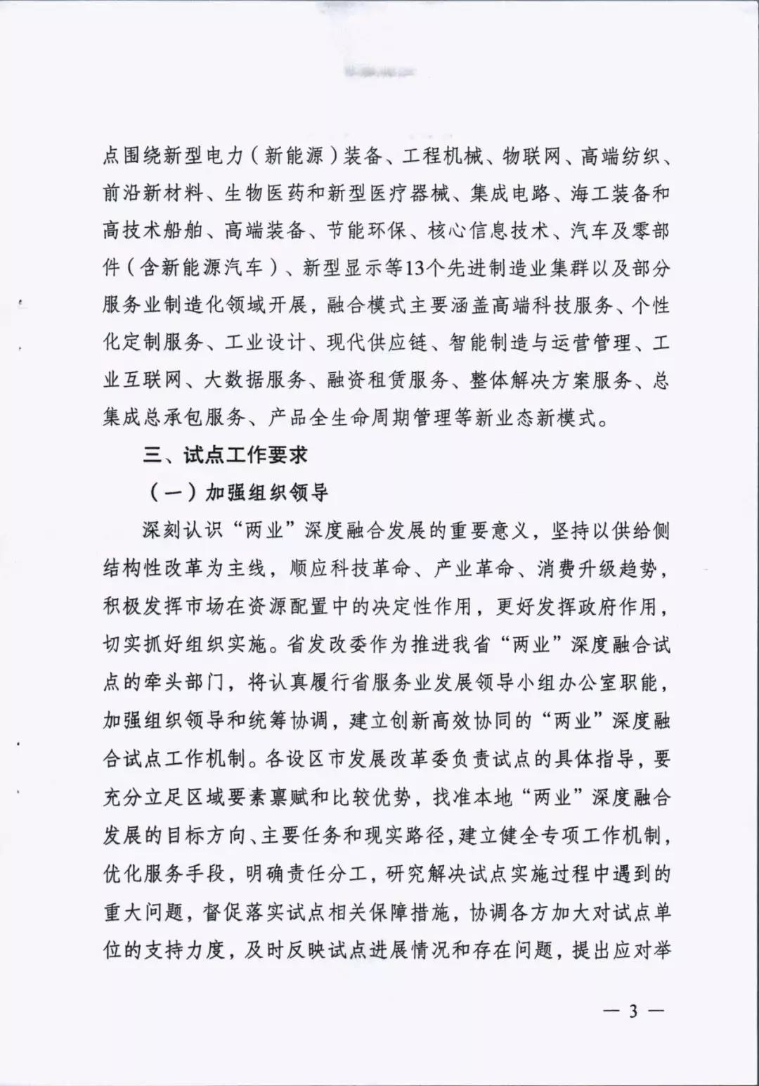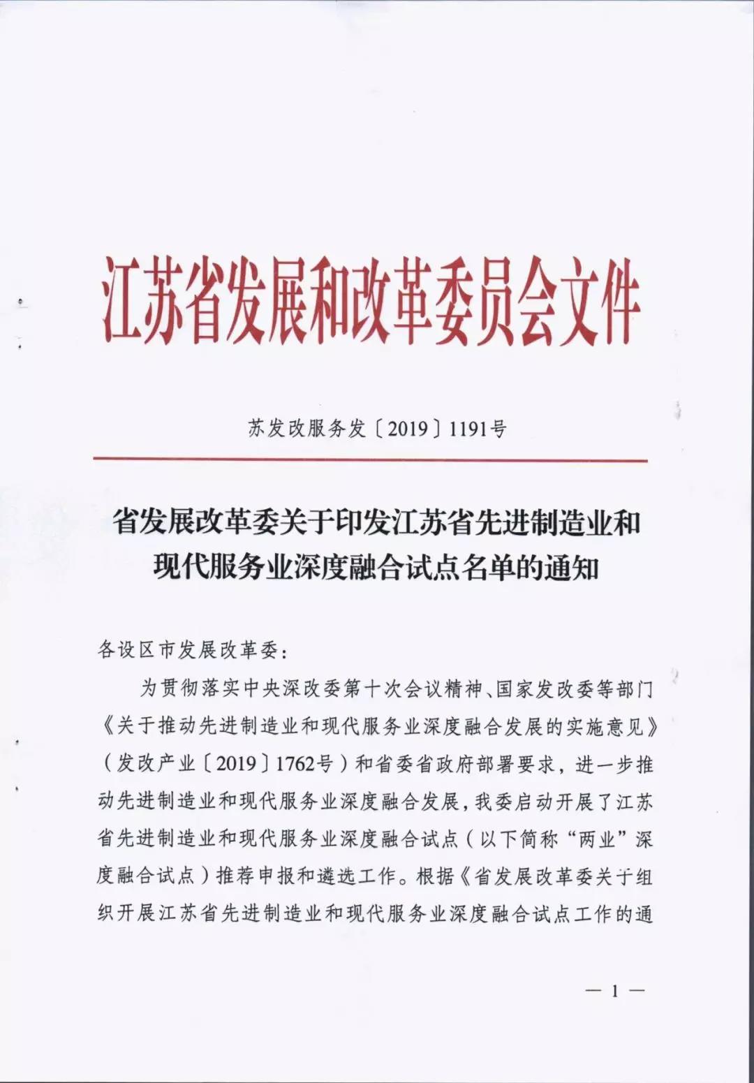 為貫徹落實(shí)中央深改委第十次會(huì)議精神、國家發(fā)改委等部門《關(guān)于推動(dòng)先進(jìn)制造業(yè)和現(xiàn)代服務(wù)業(yè)深度融合發(fā)展的實(shí)施意見》(發(fā)改產(chǎn)業(yè)〔2019〕1762號(hào))和省委省政府部署要求,進(jìn)一步推動(dòng)先進(jìn)制造業(yè)和現(xiàn)代服務(wù)業(yè)深度融合發(fā)展,我省啟動(dòng)開展了江蘇省先進(jìn)制造業(yè)和現(xiàn)代服務(wù)業(yè)深度融合試點(diǎn)推薦申報(bào)和遴選工作。根據(jù)《省發(fā)展改革委關(guān)于組織開展江蘇省先進(jìn)制造業(yè)和現(xiàn)代服務(wù)業(yè)深度融合試點(diǎn)工作的通知》(蘇發(fā)改服務(wù)發(fā)〔2019〕851號(hào))要求,在各地申報(bào)的基礎(chǔ)上研究確定123家龍頭骨干企業(yè)、21家產(chǎn)業(yè)集群和15家集聚區(qū)域作為首批“兩業(yè)”深度融合試點(diǎn)單位。我市江蘇鵬飛集團(tuán)股份有限公司大型成套裝備總集成總承包融合試點(diǎn)、鑫緣繭絲綢集團(tuán)股份有限公司繭絲綢全產(chǎn)業(yè)鏈產(chǎn)品生命周期管理融合試點(diǎn)、中國天楹股份有限公司智慧城市環(huán)境管理系統(tǒng)應(yīng)用總集成總承包融合試點(diǎn)共三家企業(yè)入選試點(diǎn)名單。