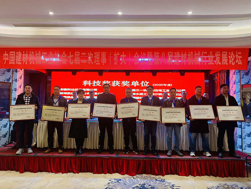 會(huì)議現(xiàn)場(chǎng)頒發(fā)了首批建材機(jī)械行業(yè)知識(shí)產(chǎn)權(quán)優(yōu)勢(shì)企業(yè)、2020年建材機(jī)械行業(yè)科技獎(jiǎng)、2020年“迪森鍋爐杯”第十四屆全國(guó)建材機(jī)械行業(yè)技術(shù)革新獎(jiǎng),并向迪森(常州)鍋爐有限公司頒發(fā)了公益企業(yè)獎(jiǎng)。江蘇鵬飛集團(tuán)股份有限公司榮獲2020年度全國(guó)建材機(jī)械行業(yè)技術(shù)革新獎(jiǎng)一等獎(jiǎng)。