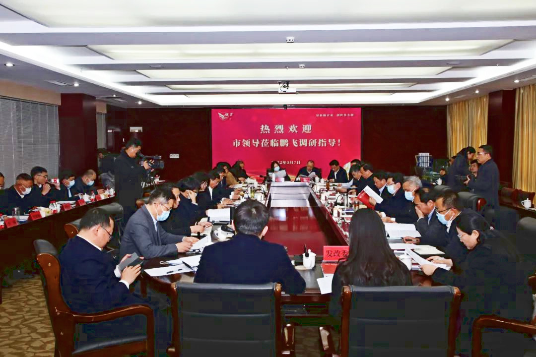 3月7日,市委書(shū)記于立忠率隊(duì)赴江蘇鵬飛集團(tuán)開(kāi)展調(diào)研。市委副書(shū)記、市長(zhǎng)譚真,市人大常委會(huì)主任張亞曦,市委副書(shū)記張浩,市領(lǐng)導(dǎo)嚴(yán)長(zhǎng)江、盧忠平、馬小飛、安譜昌、張颯參加活動(dòng)。鎮(zhèn)黨委書(shū)記金山存,黨委副書(shū)記、鎮(zhèn)長(zhǎng)魯競(jìng),副鎮(zhèn)長(zhǎng)曹陽(yáng),江蘇鵬飛集團(tuán)股份有限公司董事長(zhǎng)王家安,等參加活動(dòng)。