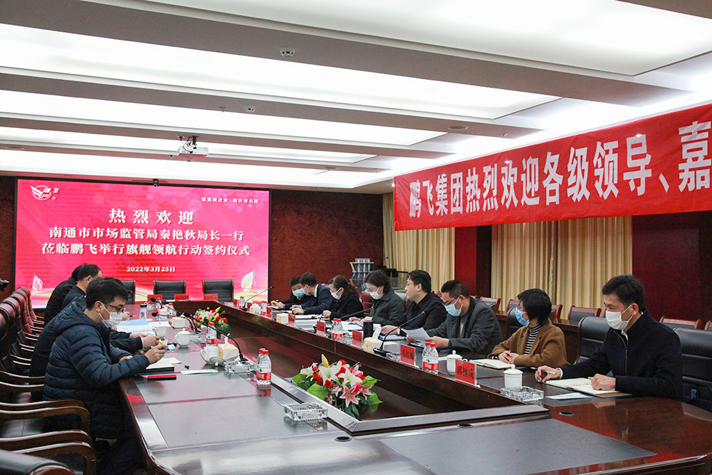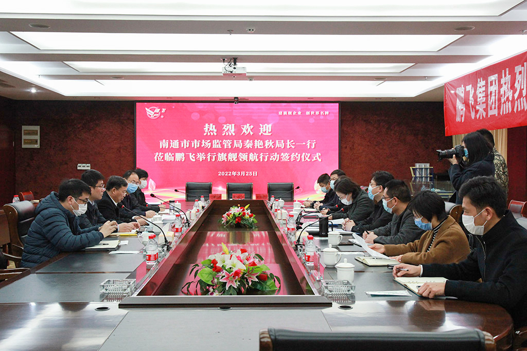 3月25日,江蘇鵬飛集團與南通市市場監(jiān)管局、海安市市場監(jiān)管局共同簽署“旗艦領(lǐng)航”行動三年共建協(xié)議。