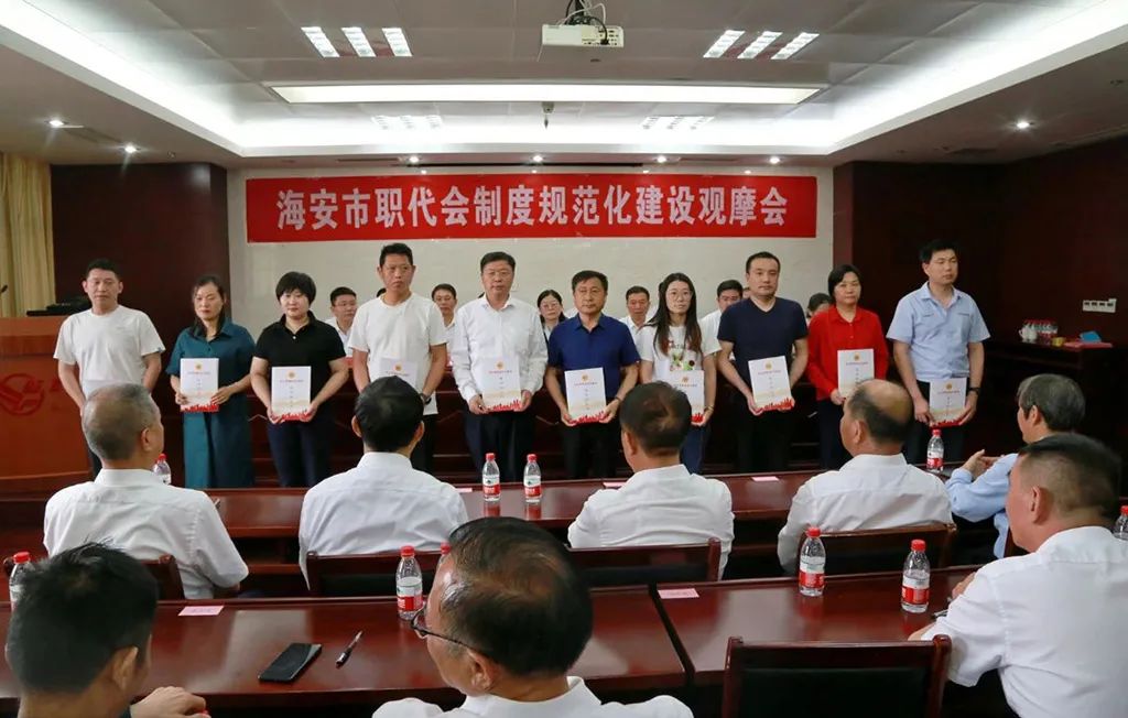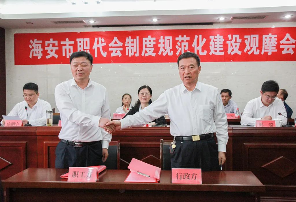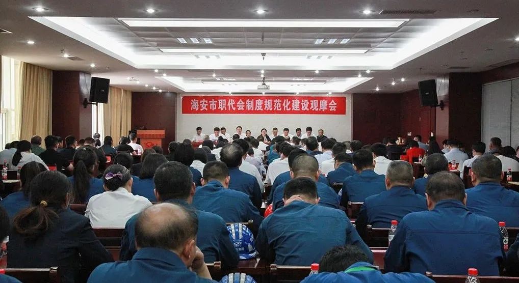 鵬飛集團職代會制度建設(shè)規(guī)范,以職代會為基本形式的基層民主管理制度體系健全程度名列前茅。借此契機,海安市總工會在鵬飛集團召開海安市職代會制度規(guī)范化建設(shè)觀摩會,來自全市40余名基層工會干部參加觀摩。