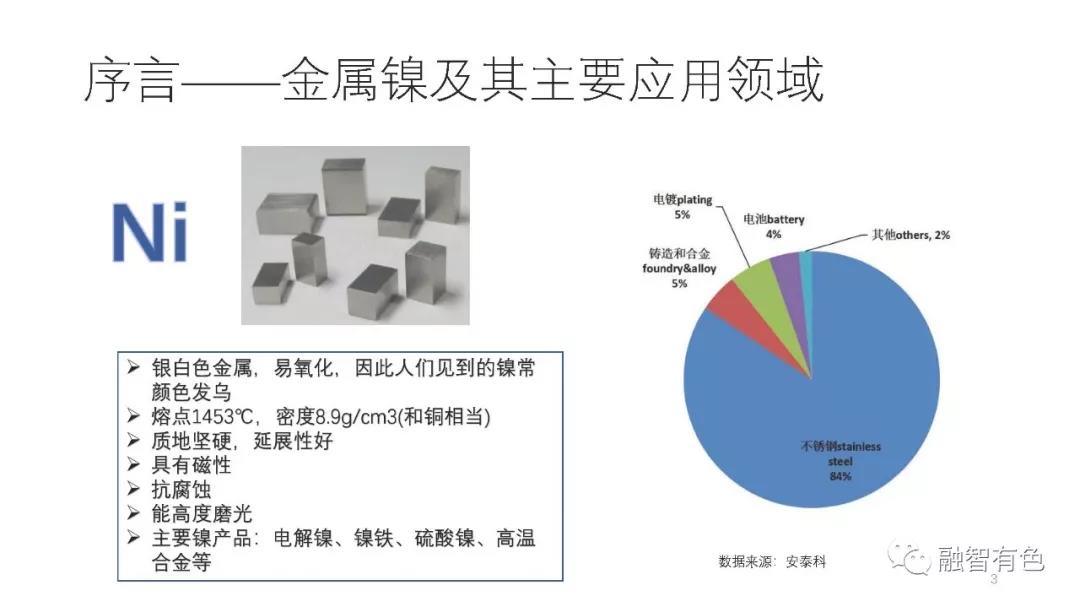 按:金屬鎳是一種性質(zhì)優(yōu)異的基礎(chǔ)金屬,在不銹鋼、電鍍、鑄造及合金、動力電池等領(lǐng)域廣泛。特別是近年來由于新能源汽車長續(xù)航里程的要求,使得高鎳三元動力電池受到大家的極力熱捧,由此又帶動了鎳在新能源領(lǐng)域的高速增長,為鎳的應(yīng)用再次錦上添花。
