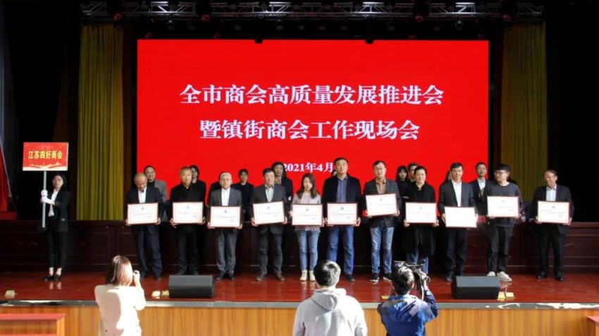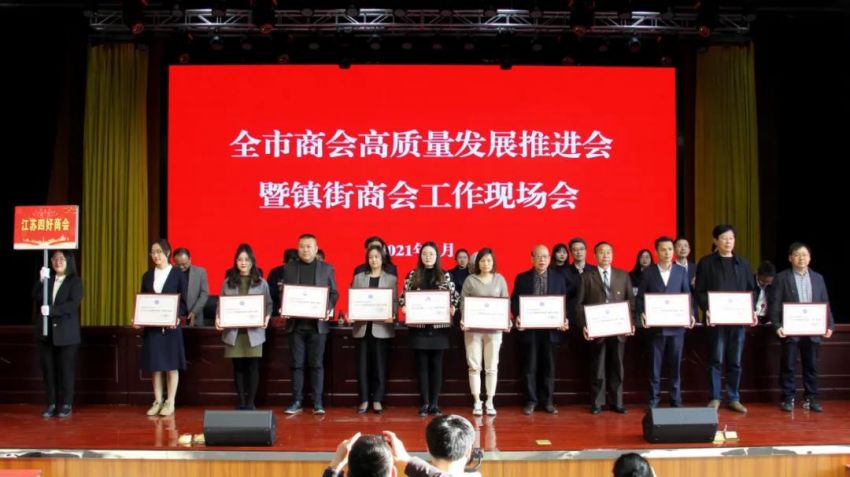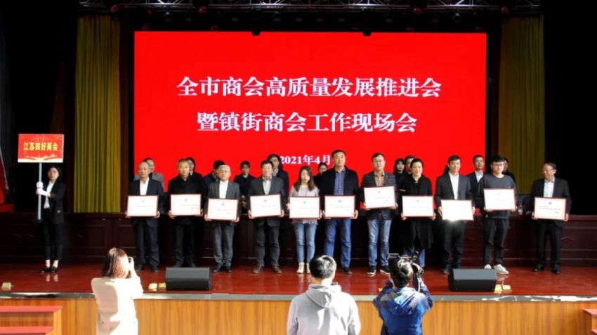 為學習貫徹中央、省商會工作會議精神,加快推進全市商會基層組織建設,推進商會組織高質量發(fā)展。4月19日下午,南通市工商聯(lián)(總商會)在我鎮(zhèn)隆重召開“全市商會高質量發(fā)展推進會暨鎮(zhèn)街商會工作現(xiàn)場會”。南通市政府副市長、一級巡視員趙聞斌,江蘇省工商聯(lián)黨組成員、副主席李曉林,南通市委統(tǒng)戰(zhàn)部副部長、市工商聯(lián)黨組書記王虎,海安市委常委、組織部長、統(tǒng)戰(zhàn)部長張明星,南通市工商聯(lián)黨組成員、副主席羅加宏,海安市政協(xié)副主席、工商聯(lián)主席、總商會會長蔡祝平,大公鎮(zhèn)黨委書記金山存,黨委副書記、鎮(zhèn)長魯競等參加活動。出席會議的還有省工商聯(lián)、市民政局相關處室領導,各縣(市)區(qū)委統(tǒng)戰(zhàn)部分管副部長、工商聯(lián)主要負責人及分管領導,全市各鎮(zhèn)街(園區(qū))統(tǒng)戰(zhàn)委員,商會會長代表,受表彰的全國抗疫先進典型,全國、省、市四好商會,榮獲全市商會十大工作品牌的商會,商會十佳會長,十佳秘書長,部分市直商(協(xié))會主要負責人,以及市工商聯(lián)相關部室人員共計250余人。