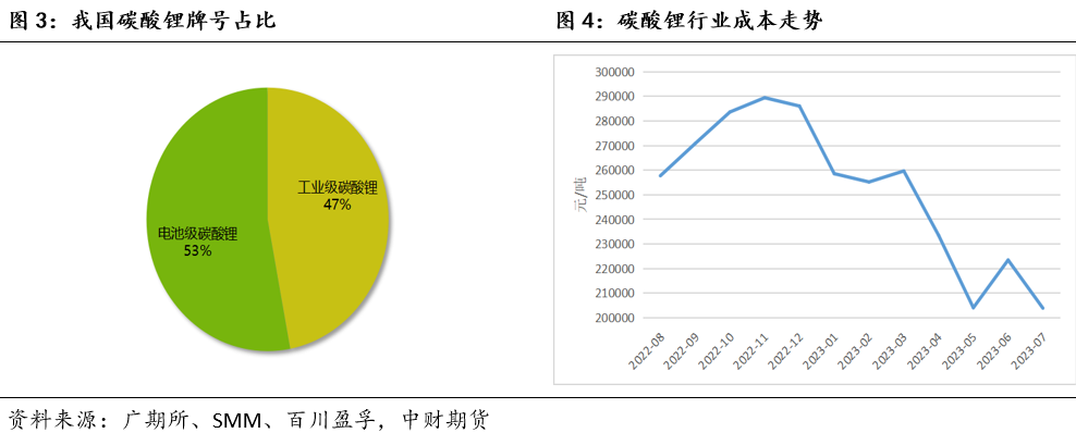 2、需求方面(1)廣東省作為國內(nèi)3C電子商品制造消費(fèi)大區(qū),其鋰電池產(chǎn)業(yè)基礎(chǔ)雄厚,擁有最完善的鋰電池產(chǎn)業(yè)鏈,涵蓋了從上游金屬礦產(chǎn)資源、電池材料,到中游電芯制造及PACK組裝,再到下游鋰電池應(yīng)用及電池回收利用的全產(chǎn)業(yè)鏈。(2)碳酸鋰的主要終端消費(fèi)為新能源產(chǎn)業(yè)(電動汽車、儲能)及3C消費(fèi)類電池。根據(jù)市場反饋,2023年6月我國新能源汽車產(chǎn)銷分別完成78.4萬輛和80.6萬輛,同比分別增長32.8%和35.2%,市場占有率達(dá)到30.7%。6月我國動力電池產(chǎn)量共計60.1GWh,同比增長45.7%,環(huán)比增長6.3%。其中三元電池產(chǎn)量17.7GWh,占總產(chǎn)量29.4%,同比下降4.2%,環(huán)比下降4.9%;磷酸鐵鋰電池產(chǎn)量42.2GWh,占總產(chǎn)量70.3%,同比增長86.3%,環(huán)比增長11.7%。6月,我國動力電池銷量共計52.2GWh,同比增長9.9%。其中三元電池銷量18.4GWh,占總銷量35.2%,同比下降16.8%;磷酸鐵鋰電池銷量33.7GWh,占總銷量64.5%,同比增長33.0%。6月,我國動力電池裝車量32.9GWh,同比增長21.8%,環(huán)比增長16.5%。其中三元電池裝車量10.1GWh,占總裝車量30.6%,同比下降13%,環(huán)比增長11.6%;磷酸鐵鋰電池裝車量22.7GWh,占總裝車量69.1%,同比增長47.5%,環(huán)比增長18.7%。(3)今年5月中旬開始,儲能市場需求逐漸向好,磷酸鐵鋰市場開工率上漲,帶動了碳酸鋰的需求量,預(yù)計下半年儲能市場需求增量顯著。進(jìn)入7月份以后,隨著3C數(shù)碼市場出口貿(mào)易的訂單逐步完結(jié),需求又恢復(fù)平淡。動力市場活躍度雖有增強(qiáng),但還未完全恢復(fù),終端的汽車動力電池需求量仍較為有限。正極材料企業(yè)多有備貨,碳酸鋰高價向下傳導(dǎo)困難,放緩了備貨節(jié)奏,觀望市場走勢,采購較為謹(jǐn)慎。(4)下游企業(yè)基本采用隨行就市的報價模式,根據(jù)原材料價格來擬定交易合同。開工率受訂單影響,上半年動力市場訂單狀況不佳,總體較去年沒有穩(wěn)定增長;3C消費(fèi)端海外訂單增量明顯,進(jìn)出口貿(mào)易狀況良好;儲能市場逐步增量,但訂單、需求、價格等向上傳導(dǎo)仍需時間,目前碳酸鋰的需求端情況仍較弱。(5)今年碳酸鋰價格大幅下跌,上游貿(mào)易商違約率不高。國內(nèi)訂單在市場價格波動劇烈的影響下,視價格行情分成兩種情況,原材料價格上漲時,上游企業(yè)較為強(qiáng)勢,原材料價格下跌時,下游較為強(qiáng)勢,會取消原有訂單報價,簽署新訂單。出口的貿(mào)易訂單極少違約,且因今年碳酸鋰價格回落的緣故,今年新開工生產(chǎn)的銷售利潤率較高。(6)目前下游的供應(yīng)和銷售情況皆平穩(wěn),原料庫存一般維持在2周左右。