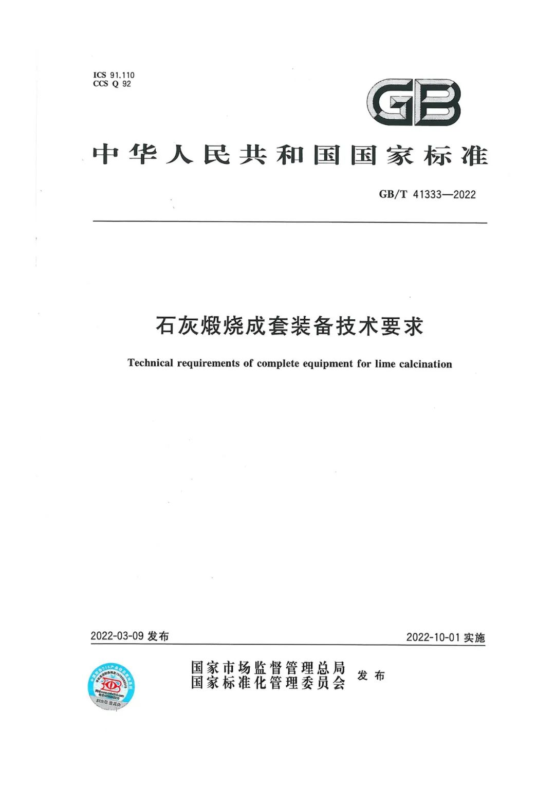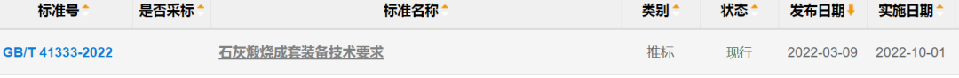 石灰行業(yè)《石灰煅燒成套裝備技術要求》(GB/T 41333-2022)最新標準于2022年3月9日正式發(fā)布,并將于2022年10月1日起實施。