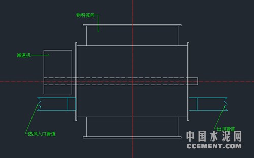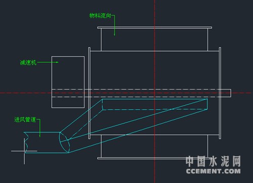 方案二:在鎖風閥軸向位置安裝導風管,將窯尾熱風通入鎖風閥,增加內部溫度,防止粘料,后從另一側通入磨機中,由于本公司安裝空間有限,以及成本等因素考慮,后分析認為這種方法并不適用與本公司。(如圖一)