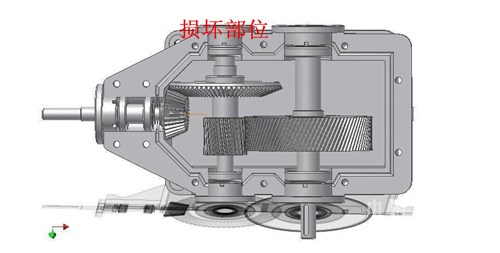 第二部分:減速機損壞維修以及后期防護。本公司四個鎖風閥的減速機都采用弗蘭德的垂直軸減速機,在鎖風閥承受較大力矩的時候,減速機內部各級齒輪也相應的承受較大的力,同時由于該種減速機二級傳動軸兩側采用推力調心滾子軸承,而且軸承端蓋沒有進行螺栓緊固,只是做了密封處理,因此在承受較大力時,也就是在鎖風閥卡停的情況下會經(jīng)常出現(xiàn)將兩側軸承端蓋頂開的情況,浪費潤滑油,增加生產風險(如圖三)。