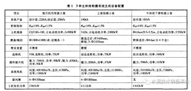 鵬飛就中卸烘干磨、立磨和輥壓機(jī)生料終粉磨方案比較