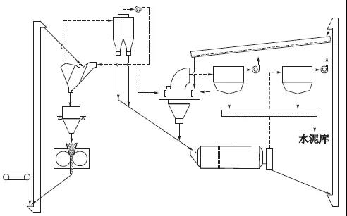 4)增加空氣輸送斜槽,將細(xì)粉分離器選出的水泥成品匯入該斜槽,經(jīng)提升機(jī)入水泥庫(kù)。